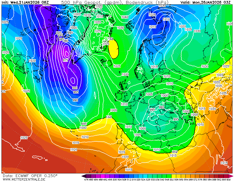 Notate quanto cambiano i modelli già sulle 100/120h, il motivo è legato ad alcuni importanti processi fisici che si verificheranno nel corso dei prossimi giorni. Intorno al 26 c.m, è previsto un picco di MPV sul piano isentropico dei 360K(limite tropopausa), con iniezione di aria Stratosferica. Ma le ZW vanno in negativo. COSA SIGNIFICA? Che avremo un Vortice Atlantico ad elevatissima vorticità ma praticamente senza movimento orizzontale, Questo è l'iinesco di un'amplificazione d'onda di blocco sul lato Europeo e della riattivazione dei flussi di calore e momento (SW). Questo crea una situazione di stallo dinamico in cui il Vortice, pur essendo profondo e cattivo, non riesce a sfondare verso Est in modo fluido, tendendo invece a "scavare" nella stessa posizione. È un nucleo di energia cinetica purissima (PV) che ha perso il suo binario di trasporto (ZW). Img: Forte incremento di Vorticità Potenziale al limite della Tropopausa Img: Crollo zonal wind sui 45/75°N In questa ultima uscita di ECMWF06z centrata per Lunedi 26 Gennaio (data che corrisponde con i grafici postati), vediamo una configurazione che aggiornamento dopo aggiornamento acquisisce una maggiore tendenza alla stazionarietà: Img: Mappa di ECMWF06 di Mercoledi 21 Gennaio centrata per Lunedi 26 Gennaio Una "trottola" Atlantica che gira velocissima ma avanza con una velocità ridotta. Ê quella dinamica di interazione che mi attendevo per fine mese ma che ancora i modelli faticano a inquadrare. Vediamo i prossimi aggiornamenti se emergono novità. Filippo Casciani