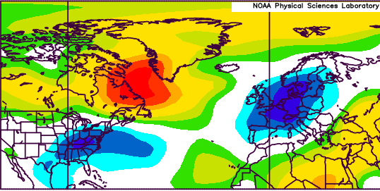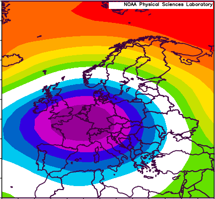 Img: La mappa rappresenta la media Geopotenziale dei mesi di Dicembre e Gennaio contraddistinti da una anomala decelerazione del vento zonale tra fine Autunno e l'inizio Invernale