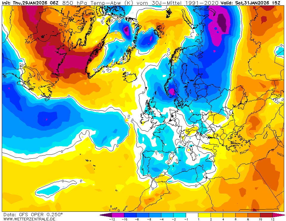 Img: Anomalie di Temperatura centrate per fine Gennaio