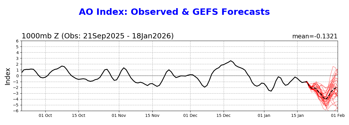 Questa è la prova del Downstream Development di cui abbiamo parlato: l'urto Stratosferico (causa) genera il blocco Artico (effetto), che a sua volta spinge l'Indice AO a valori da record negativo.