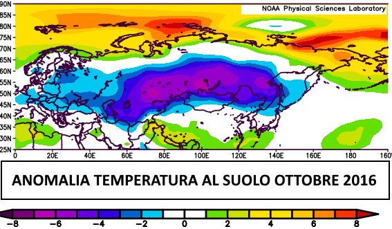 Ad esempio, un eccezionale raffreddamento del settore Siberiano fu registrato nell'Ottobre del 2016: