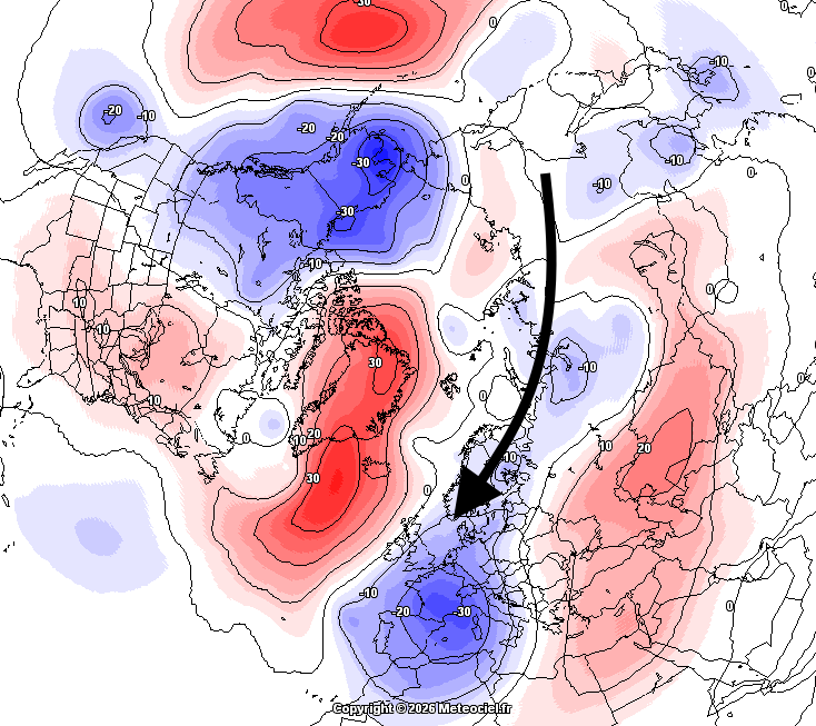 Quando il GLAAM crolla in questo modo, il getto polare perde velocità e tende a formare onde di grande ampiezza, facilitando la discesa di masse d'aria polari verso l'Europa.