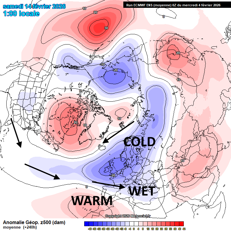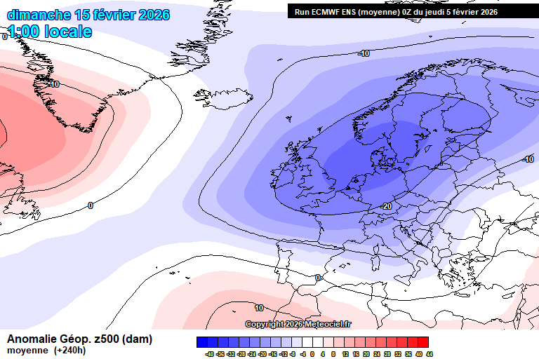 Img: Anomalie di Geopotenziale centrate per il 15 Febbraio (ENS Ecmwf)