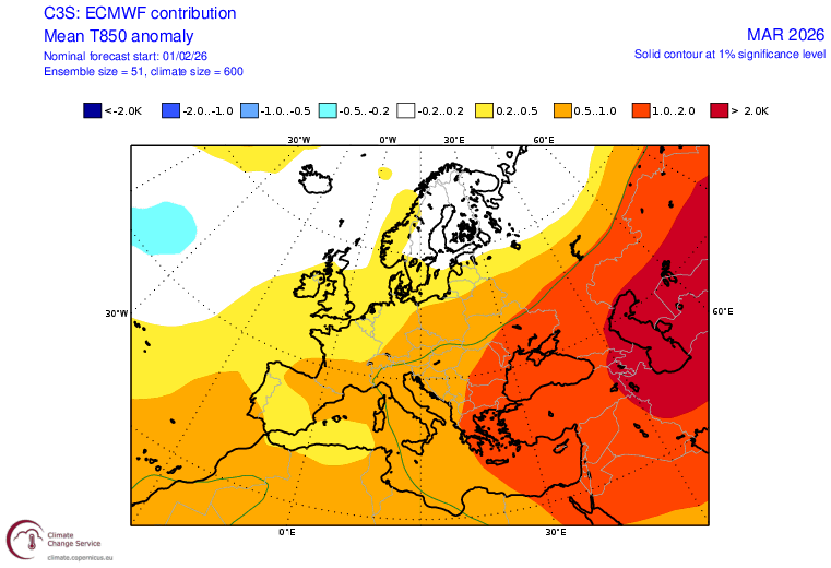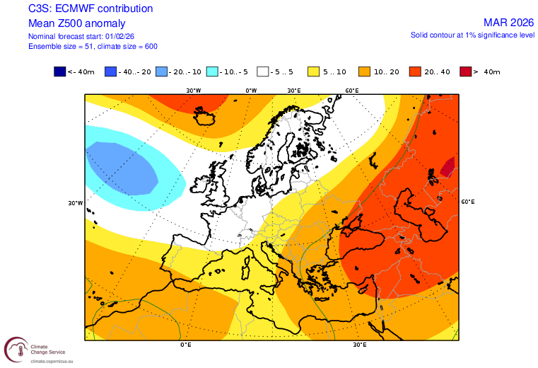 Le ultime Proiezioni del Modello Europeo ECMWF, vedono i mesi di Marzo ed Aprile Caratterizzati da un Flusso Atlantico medio-alto con Temperature sopra la norma e precipitazioni in linea col periodo. L'Oceano Atlantico quindi rimarrebbe depresso, con ancora la difficoltà nell'instaurazione di Blocchi Zonali, dinamica che allontanerebbe la probabilità di dannose brinate. Considerato che la vegetazione è molto avanti con alberi da frutto già pronti a fiorire, questa sarebbe un'ottima notizia. Tuttavia anche se il segnale è debole, non si possono escludere brevi fasi fredde, come accaduto anche nel recente passato. Img: Anomalie GPT Marzo Img: Anomalie di Temperatura Marzo Img: Anomalie GPT Aprile Img: Anomalie di Temperatura Aprile Filippo Casciani & Staff CSCTmeteo